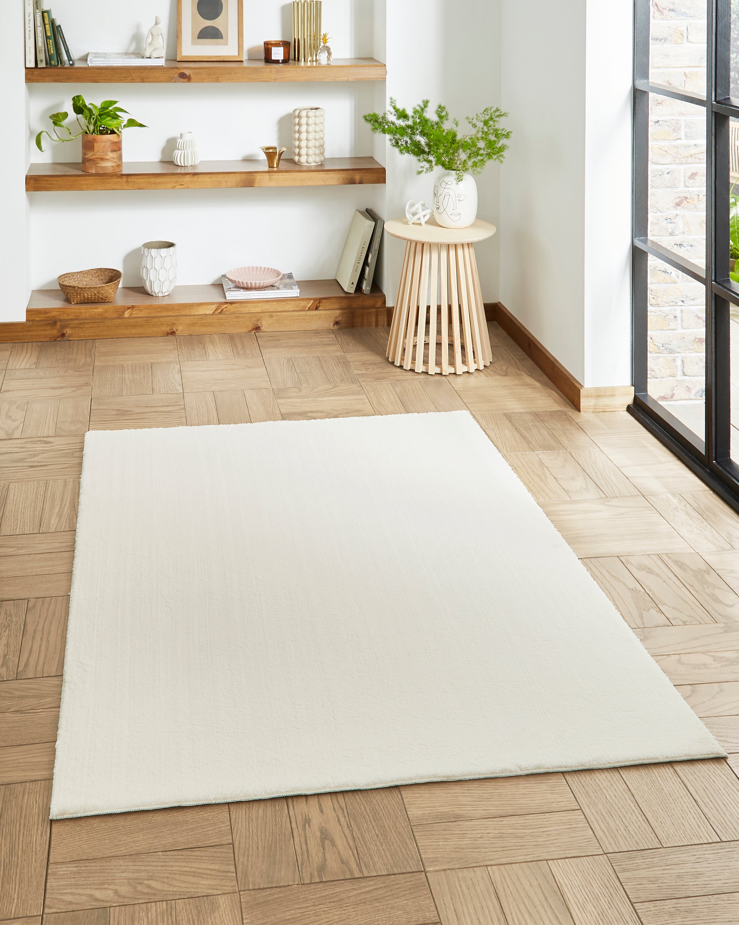 Bay Washable Plain Rug (Ivory)