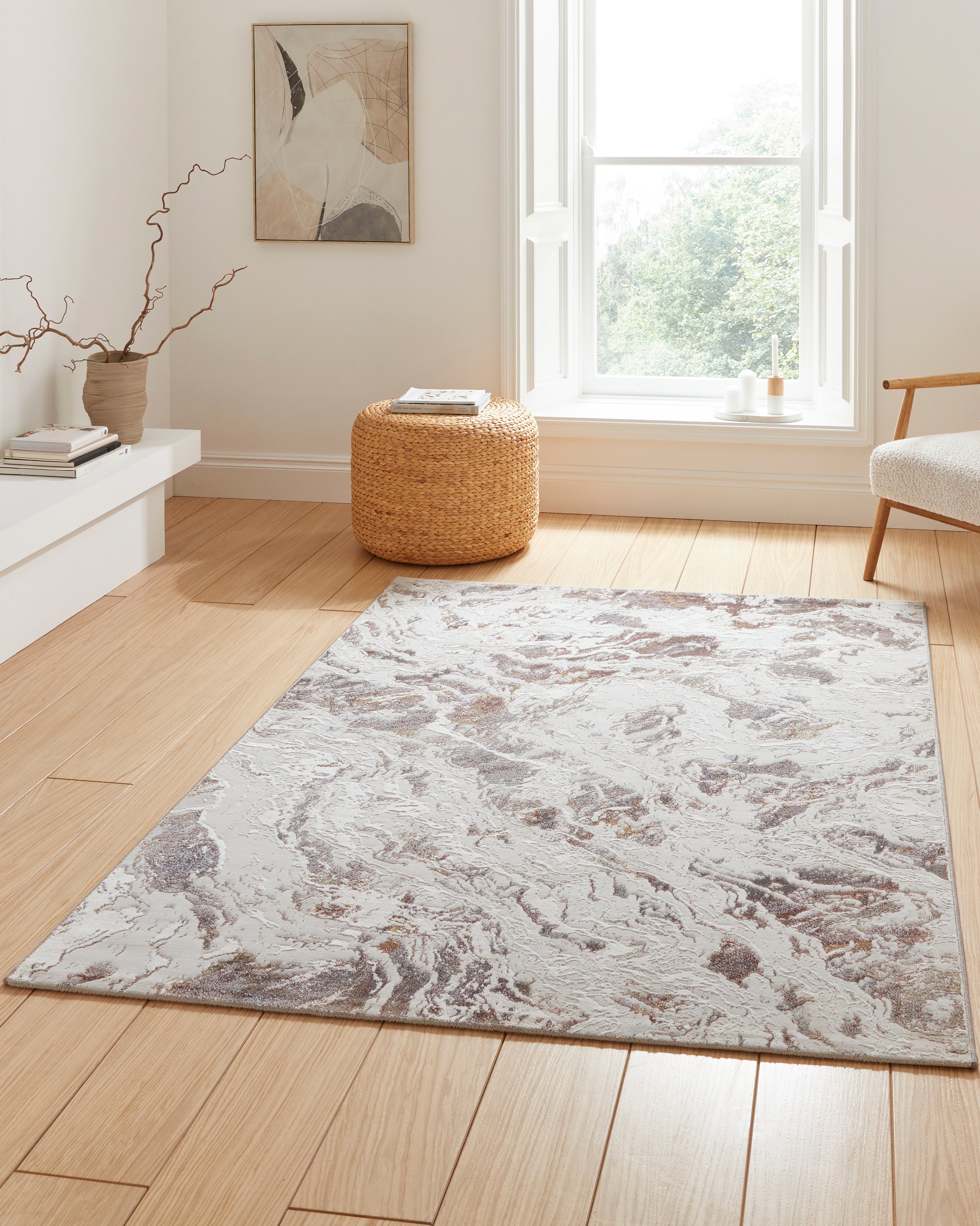 What sets the Creation range apart is its unique metallic effect, seamlessly woven into the intricate designs. Each rug becomes a work of art, capturing and reflecting ambient light, creating a subtle play of shimmer that adds a touch of glamour to your surroundings.