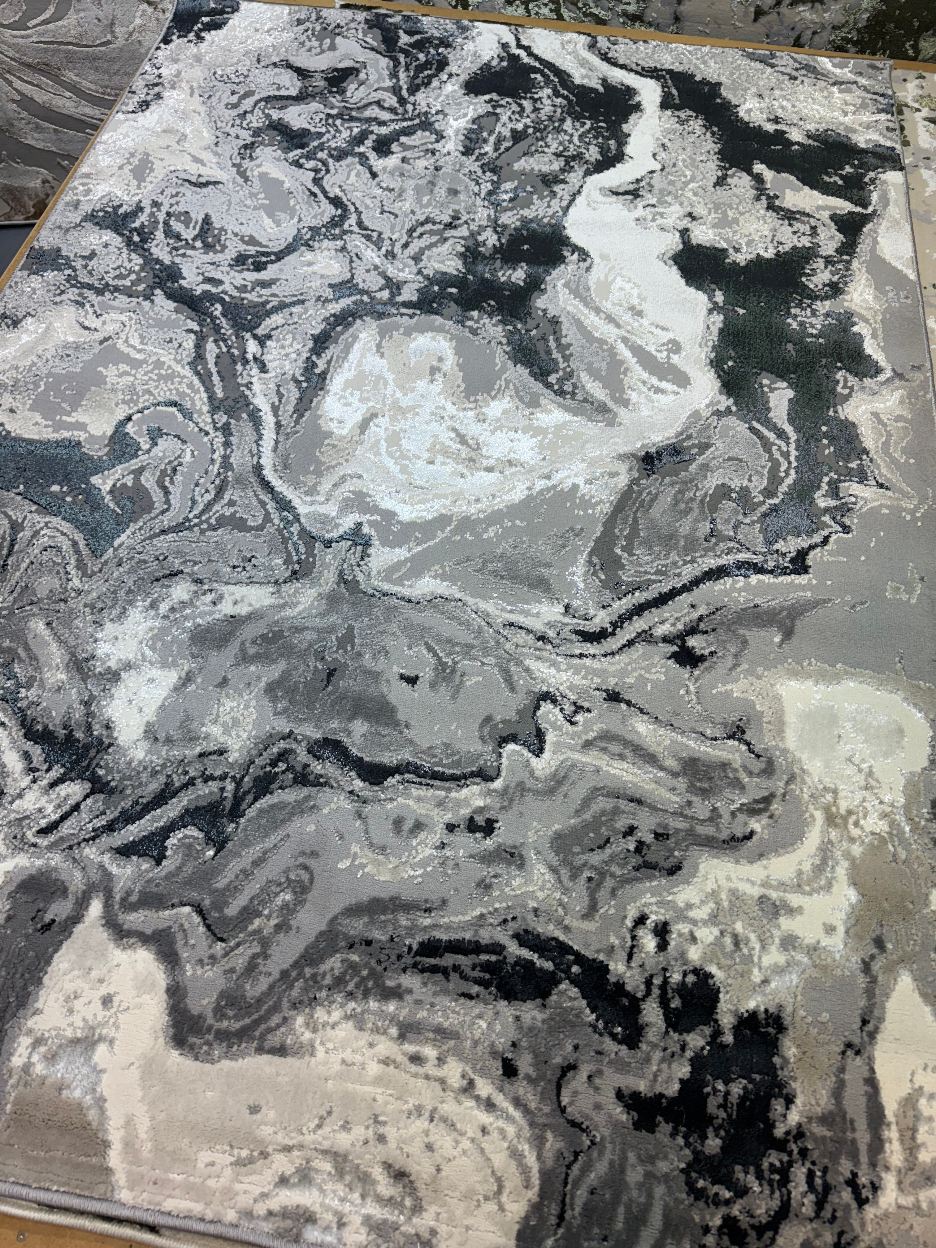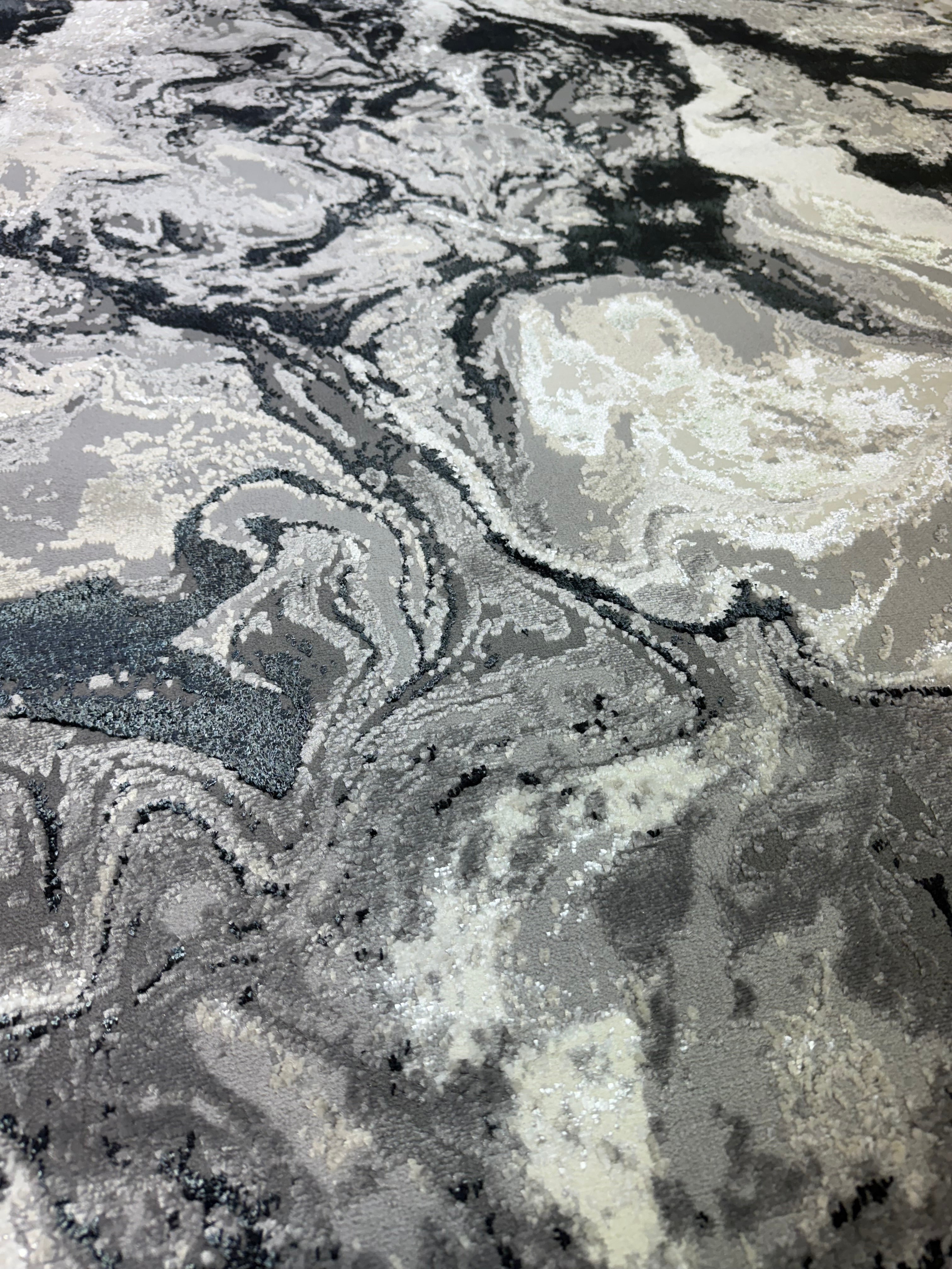 The Nevada 9788 Rug brings a sleek, modern feel with its marbled abstract design in soft greys, silvers and black. The swirling pattern creates a luxurious, fluid look that adds depth and sophistication to any space. Perfect for contemporary homes, it’s both eye-catching and easy to maintain.